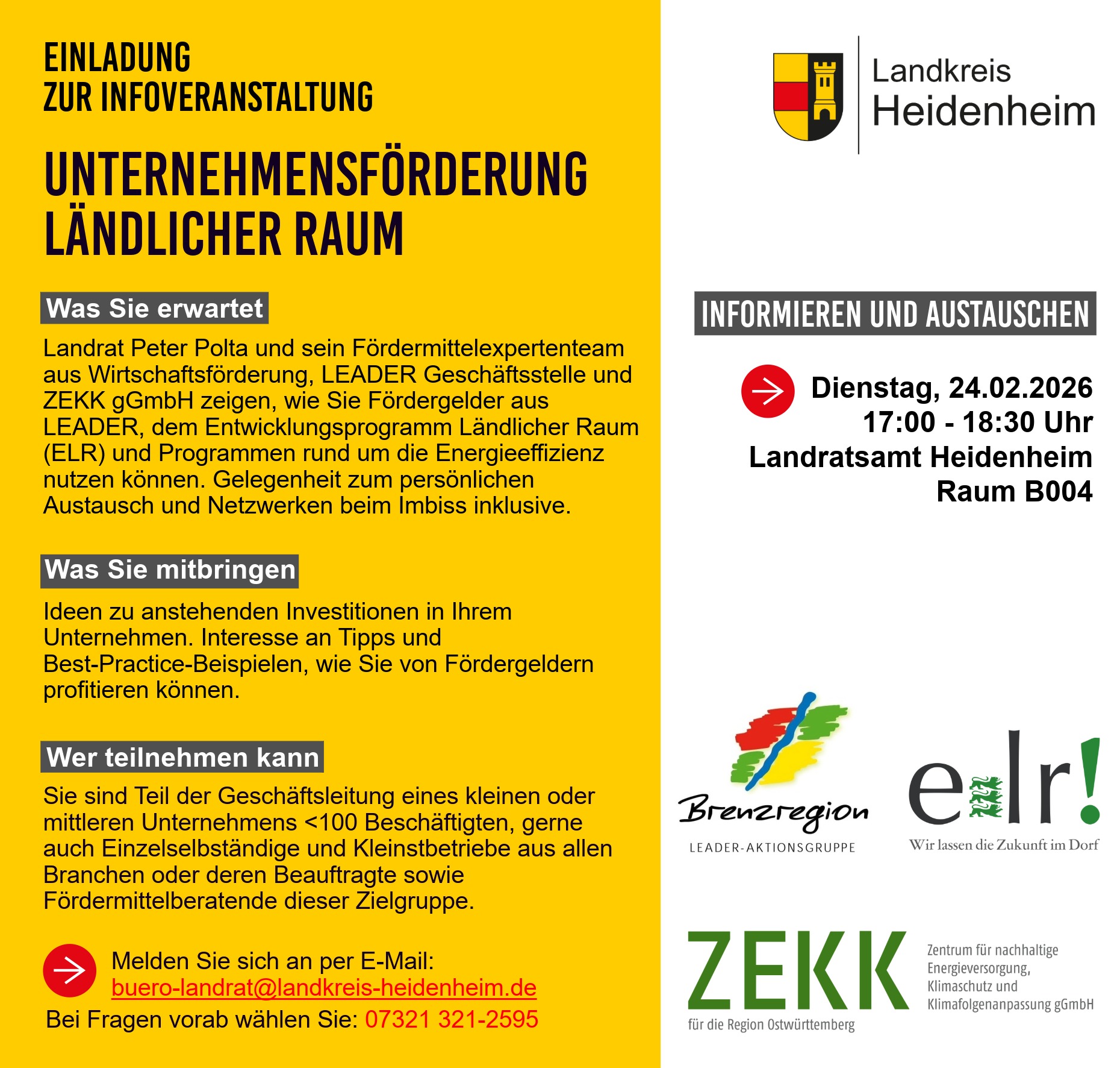 Einladung zur Infoveranstaltung Unternehmensförderung Ländlicher Raum Einladung Unternehmensförderung ländlicher Raum (486 KB)